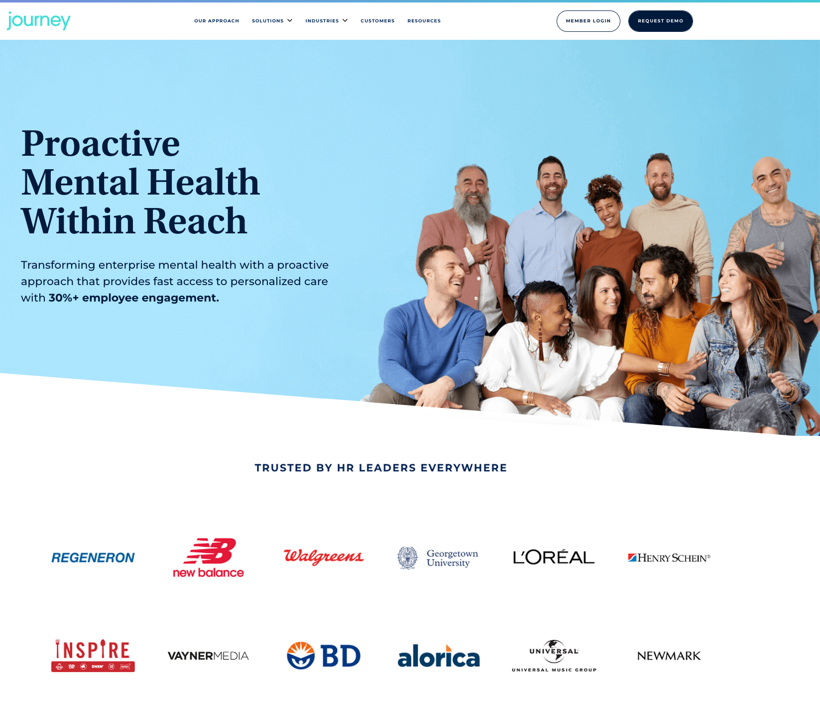For organizations, Journey provides mental health support aimed at reducing stress and burnout while fostering resilience. Studies show participants have experienced measurable improvements, such as a 20% reduction in stress and a significant increase in workplace engagement. Companies like Morgan Stanley have reported that 100% of employees who participated in the Journey program showed improved mood and lower stress levels.